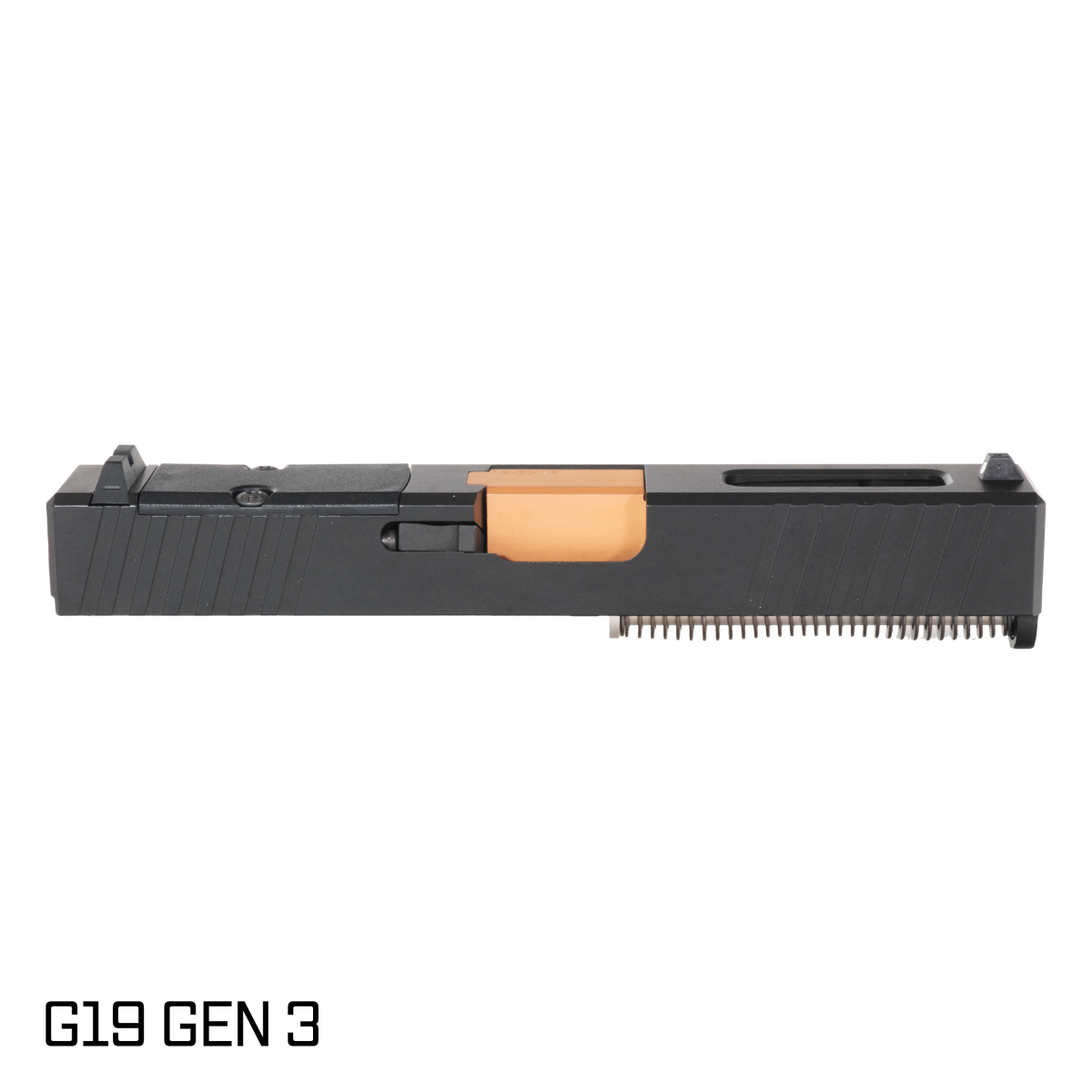 Upgrade your Glock 19 Gen 1-3 with this elite slide kit that includes a crowned barrel finished in Copper PVD and a fully RMR-cut slide. The Copper PVD adds a premium look with durability, while the RMR-cut slide enables optic-ready performance for tactical or competition builds.