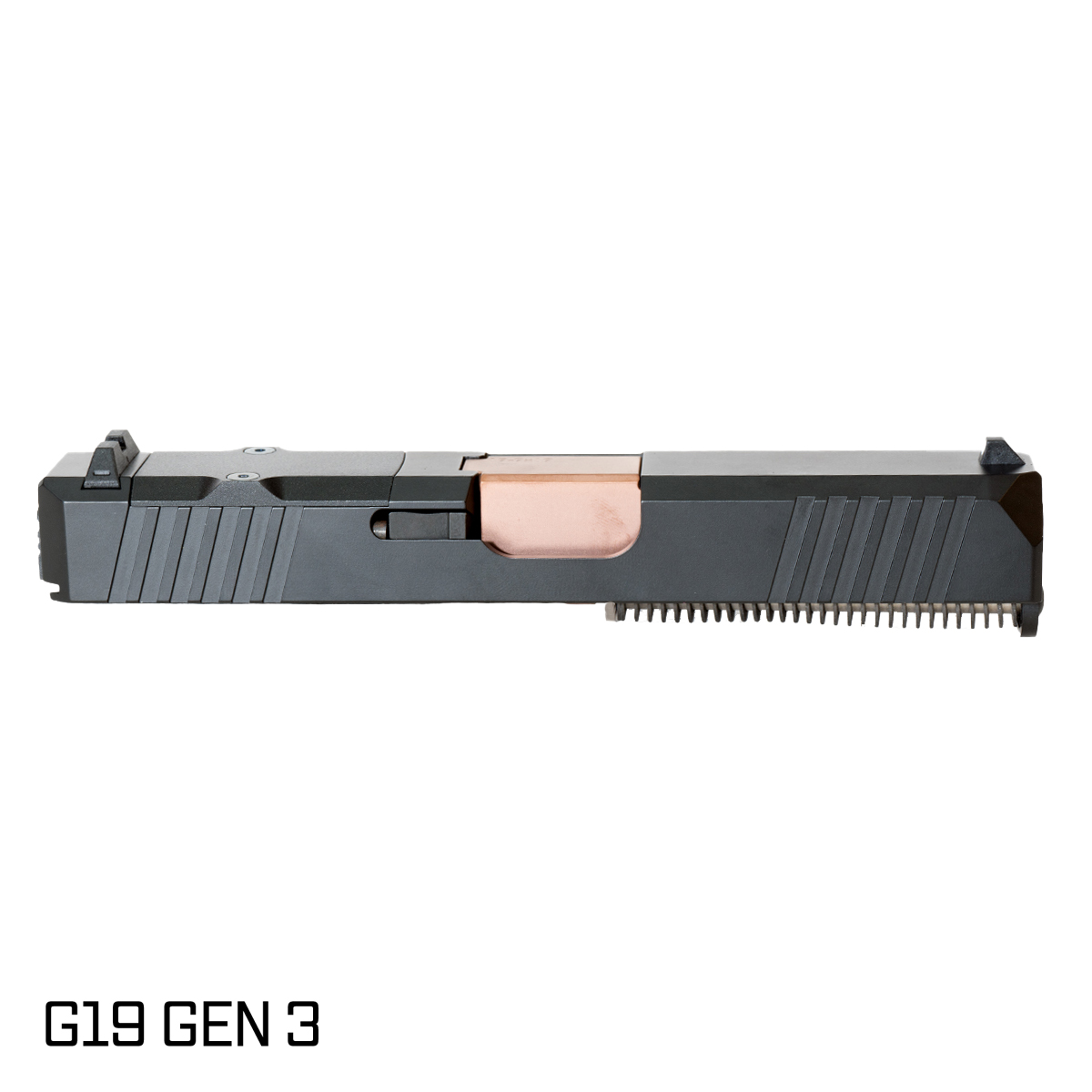 Build a high-performance, stylish Glock 19 Gen 1–3 with this complete slide kit. It includes a crown-cut copper-finished barrel and a graphite black slide, plus all necessary internals for a reliable, custom build. Perfect for precision or tactical setups.