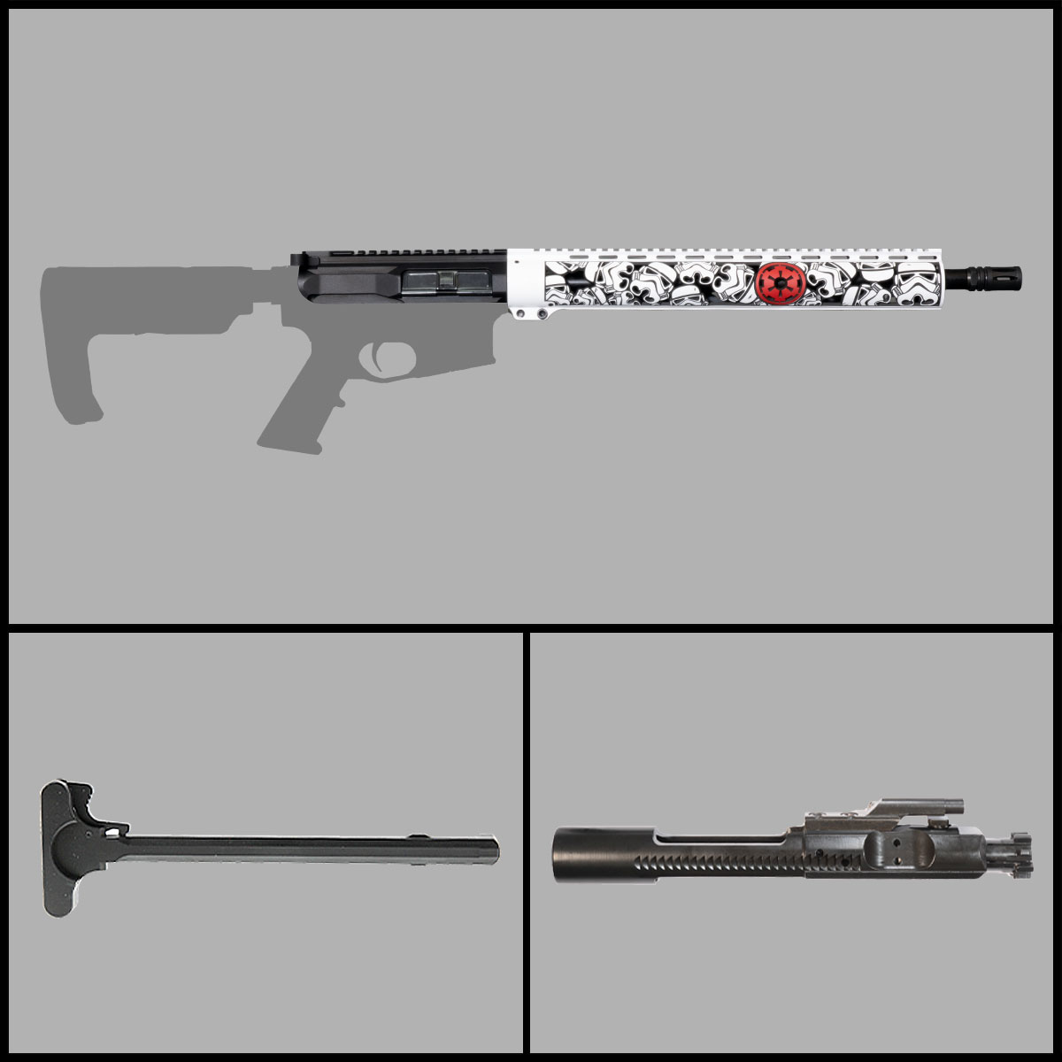 The 3KEYZ Tactical Imperial Enforcer 16.5″ 5.56 NATO Complete Upper is built for durability, precision, and long-range performance. Featuring a 16.5″ medium-profile 4150 CMV barrel with a nitride finish and a 1:7 twist rate, this upper is optimized for both supersonic and subsonic 5.56 NATO loads. The mid-length gas system and micro low-profile .750" gas block ensure smooth, reliable cycling. A free-float M-LOK handguard provides modularity for accessories, while the nitride-finished 9310 alloy bolt carrier group and Mil-Spec charging handle complete a ready-to-go assembly. The A2 birdcage flash hider keeps muzzle flash manageable, making this upper a versatile and dependable choice.